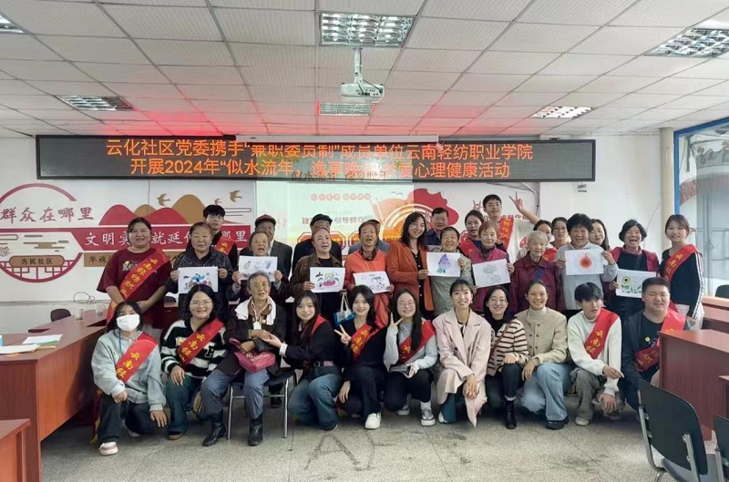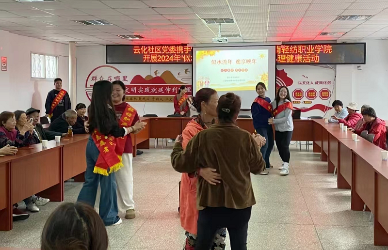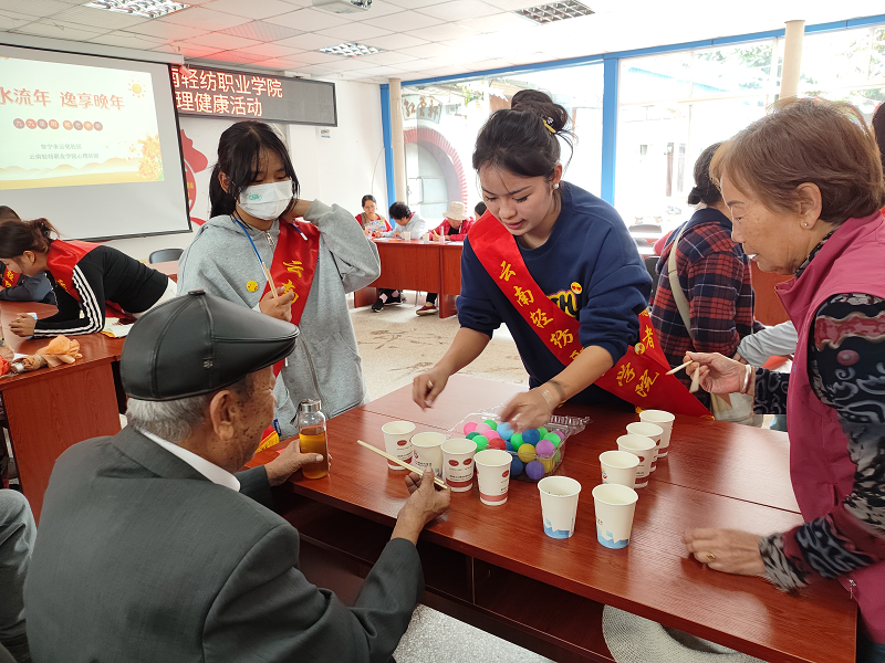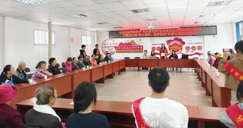 年年重九树敬老之风,金秋佳节促社会文明。为了弘扬中华民族尊老敬老的传统美德,同时丰富社区老年人的精神文化生活,云南轻纺职业学院心理社团的志愿者们在指导教师张琪和校团委和茜老师、杨杰老师的带领下,带着满满的爱心与温暖,走进了安宁市连然街道云化社区居家养老服务中心,为社区爷爷奶奶们举办了一场别开生面的心理关怀活动,让老年人感受到了来自社会的温暖与关怀。