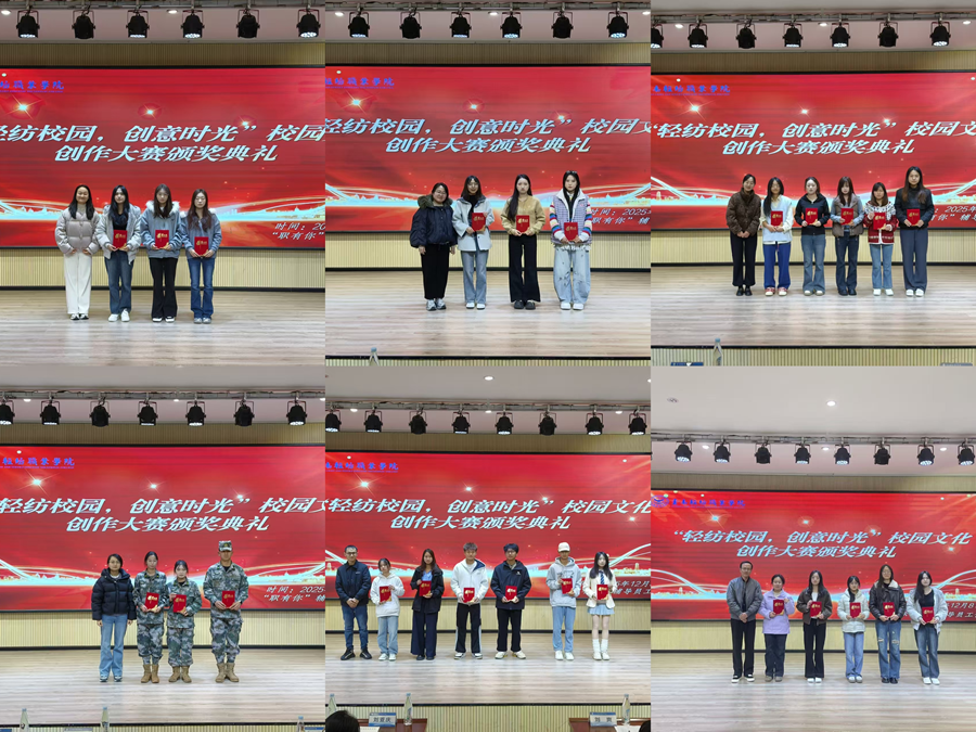 云南轻纺职业学院“职有你”辅导员工作室主办的“轻纺校园,创艺时光”校园文化创作大赛颁奖典礼在图书馆一楼苏芳厅落下帷幕。本次大赛旨在落实美育教育,鼓励同学们通过手绘、设计、摄影、视频等多元艺术形式,挖掘校园故事,展现轻纺风采。