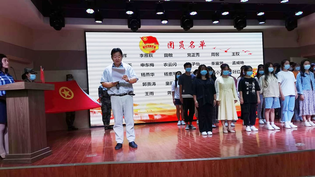 6月25日中午,云南轻纺职业学院2019-2020学年新团员入团宣誓仪式在2号教学楼报告厅举行。学院党委书记毛一波,副院长李伦琼,团委书记钟南、团委副书记龚君、食品药品学院书记李玮、机电学院书记吴刚、艺术与产品学院书记邵贵生、服装学院书记王鸿海、院团委全体成员、各学院学生代表及30名新团员参加宣誓仪式。团委副书记龚君主持大会。