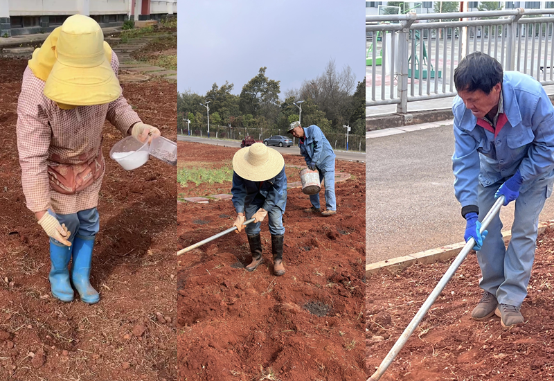 活动在后勤服务中心工作人员指导下有序展开。师生们分工协作,松土、开沟、播种、覆土、浇水,每一个环节都一丝不苟。大家在劳动中学习种植技巧,体验耕作辛劳;后勤服务中心绿化工人则分享日常绿化养护经验,其默默付出赢得师生们的广泛敬意。现场气氛热烈融洽,劳动与交流交织,协作与尊重并存。