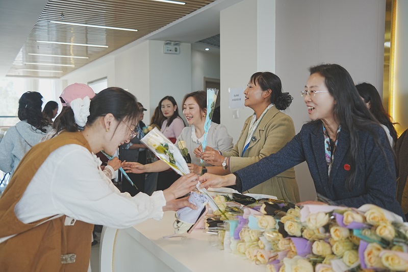 下午,精油护手霜手作活动温馨开展。在专业教师指导下,女教职工们精心调配、亲手制作,在指尖艺术中舒缓压力、悦纳自我,展现出热爱生活、向美而行的精神风貌。随后,工会委员和妇联执委为每一位女教职工送上鲜花,融融暖意充盈在五楼大厅。
