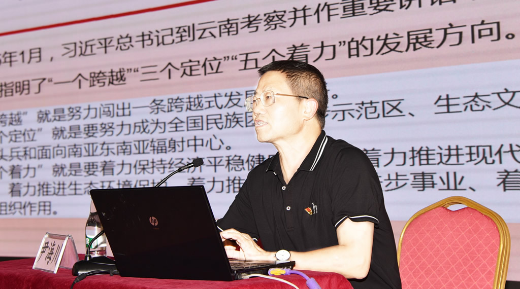 尹海川同志首先带领大家学习领会了习近平总书记2015年和2020年考察云南时的重要讲话精神。他强调习总书记两次考察云南的重要讲话和指示精神,构成了指引云南发展的行动纲领和根本遵循,对新时代云南发展具有重大而深远的里程碑意义。要求全校教职员工要从政治的、全局的、战略的高度,把习近平总书记对云南的深情厚爱转化为干事创业的动力。尹海川同志接着宣讲了习总书记在全国教育大会上的讲话精神。着重强调了习近平总书记号召广大教师做“四有好老师”,做学生的“四个引路人”和教育工作中的“四个相统一”。进而分析了国家教育现代化和云南教育现代化的大趋势。结合学校实际工作,尹海川同志着重讲述了学校“十四五”规划和“大强特”三步走发展战略的设想以及办学理念、校训定位的设想。最后尹海川院长号召全体教职工:要勇于担当学校改革发展的新使命,忙起来、干起来;要自觉增强自己的理想信念,提升自己的使命担当,为云南轻纺职业学院的发展贡献自己的力量!