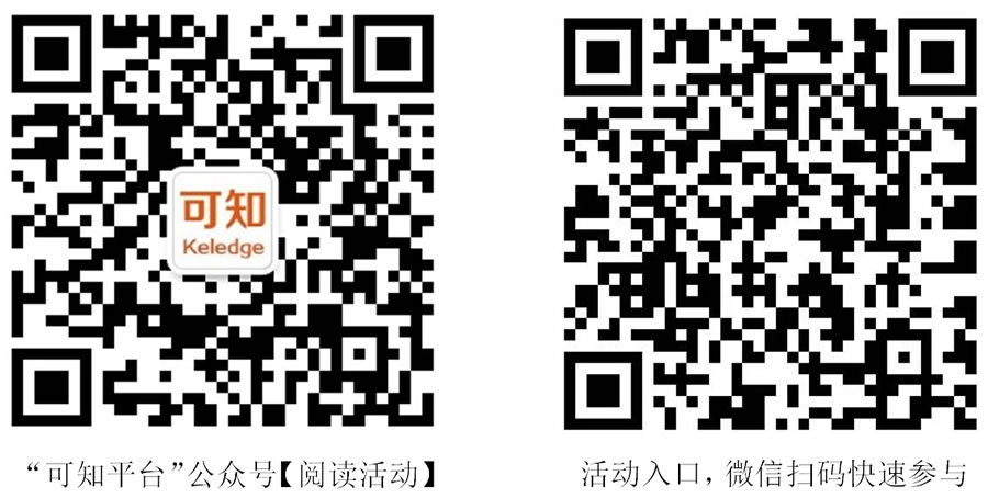 本次活动4月8日0时准时开启,读者可通过“可知平台”公众号【阅读活动】、“可知平台”官网(www.keledge.com)、“可知”H5 banner图、“可知”活动海报、活动推文二维码等多个入口参与。