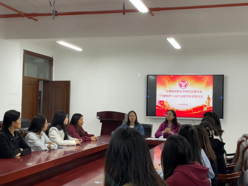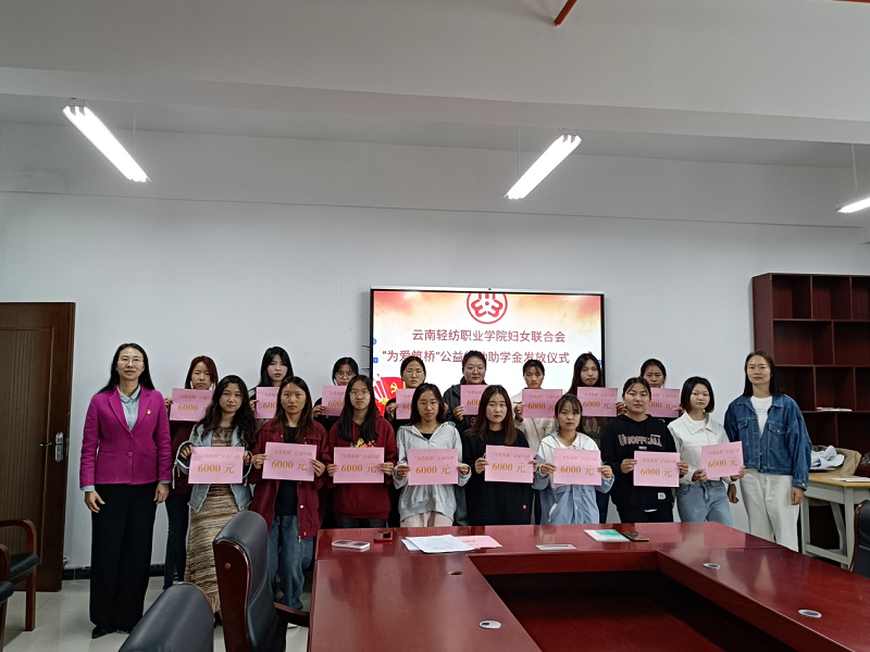 为贯彻落实云南省妇女儿童发展基金会关于实施“为爱筑桥”公益行动助学项目的要求,3月22日上午,云南轻纺职业学院妇女联合会在经世楼203会议室举行了”为爱筑桥“公益行动助学金发放仪式。学校党委副书记、妇联主席李伦琼出席了会议,部分执委以及受助学生参加了会议。会议由妇联兼职副主席陈升翠主持。