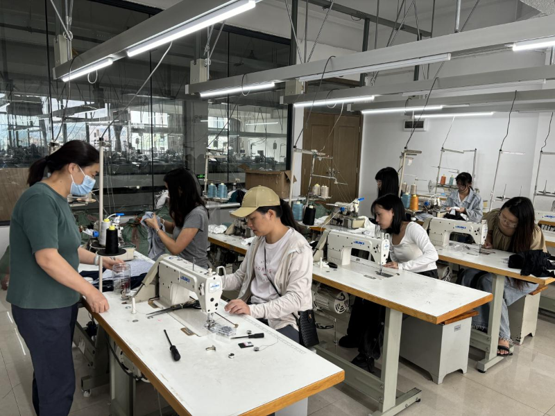 培训期间,晶苑国际集团的技术导师们结合企业一线生产经验,向学生们详细讲解了服装行业的前沿技术工艺,包括面料选择、版型设计、缝制技巧等。导师们不仅展示了传统的工艺技巧,还着重介绍了新型机器设备的使用方法,让学生们在实习前就能够掌握这些先进设备的基本操作技能。