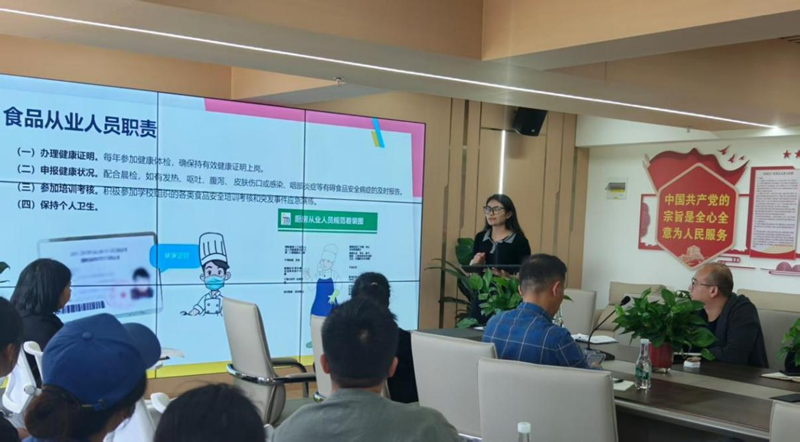 后勤服务中心刘玉飞对参训人员开展了食品安全专题培训,聚焦食材采购、人员健康与培训、食品贮存、加工制作、面点制作、食品留样、洗消与保洁、有害生物防治及日管控、周排查、月调度等9大风险防控核心模块,对关键要点进行全面深入的培训,切实筑牢全体参会人员的食品安全意识。其后,后勤服务中心杨汝康老师针对长水外滩消防及水电安全提出了“三个责任”,对所有商户食品安全与综合安全管理进行了具体工作部署。