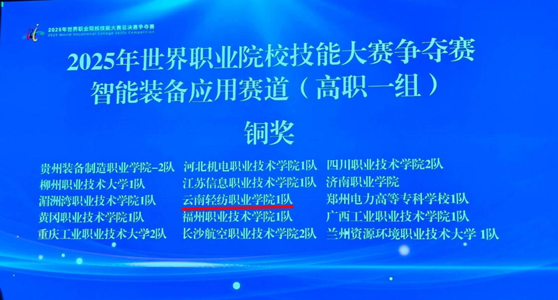 轻纺学子在2025年世界职业院校技能大赛总决赛“智能装备应用赛道”斩获铜奖