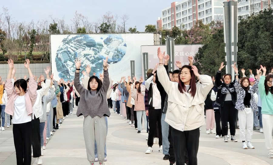 2021年3月9日早上,伴随着《你笑起来真好看》的欢快歌声,经贸学院学生开始了新学期第一次“快乐早操”。