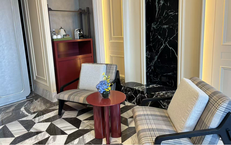 在客房区域,两位老师重点考察了客房的数字化运营设施,详细了解了全屋智能系统的运作模式;在餐饮区域,两位老师就餐饮服务流程、数字化点餐系统应用与酒店餐饮部经理展开深入交流,详细记录了企业对餐饮服务岗位的技能要求与人才标准。