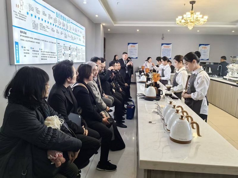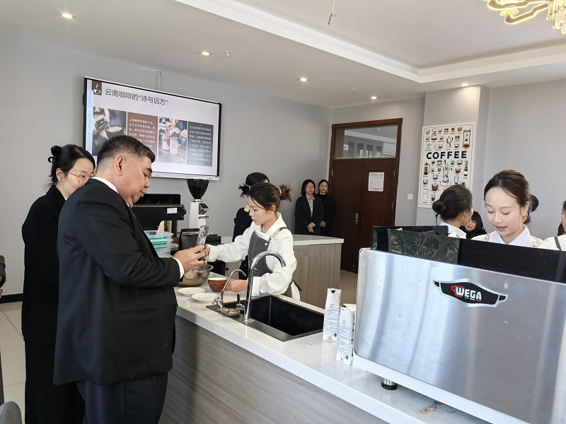 12月16日,泰国教育部及南部边境省职业教育代表团一行到访我校,开展职业教育交流合作。下午三时许,代表团来到经济贸易学院经世楼一楼的咖啡实训室,学院“微光”志愿服务队的师生以浓郁的云南咖啡文化为主题,为远道而来的客人呈现了一场充满香醇与温情的专业交流。