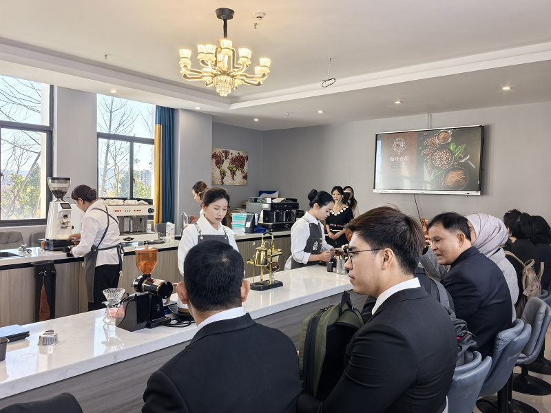 茶香咖韵迎远朋职教合作谱新篇——经济贸易学院“微光”志愿服务队为泰国教育部及南部边境省职教代表团展示云南咖啡文化