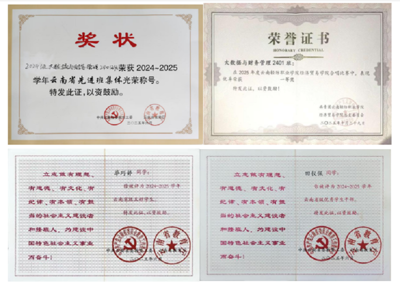 班级秉承“笃学力行 锐意进取”精神,2024年8月入学至今硕果累累。集体荣誉方面,2025年6月获省级先进班集体,2024年12月获院级先进班集体,2025年10月获院级合唱比赛一等奖,2024年12月迎新杯篮球赛获院级第五名,2024年8月至今累计获卫生流动红旗9次。个人荣誉方面,1人获评省级五好学生,1人获评省级优秀学生干部;2人获院级优秀宿舍长称号,2人获院级优秀学生干部称号。