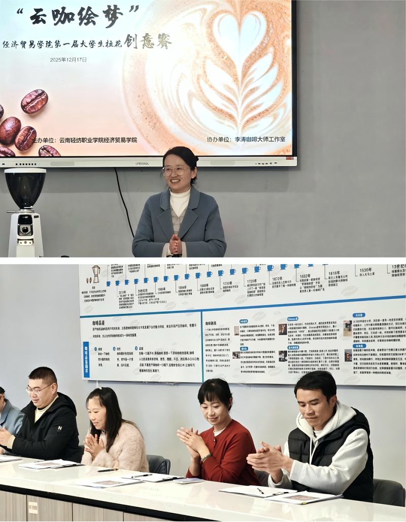 此次赛事为热爱咖啡文化与创意艺术的学子搭建了展示平台,推动了校园文化的创新表达。学子们将专业知识、文化素养与实践技能深度融合,尽显扎实功底与创新活力。未来,经济贸易学院将继续搭建特色平台,丰富校园文化生活,助力学生全面发展,让创意之花在校园持续绽放。