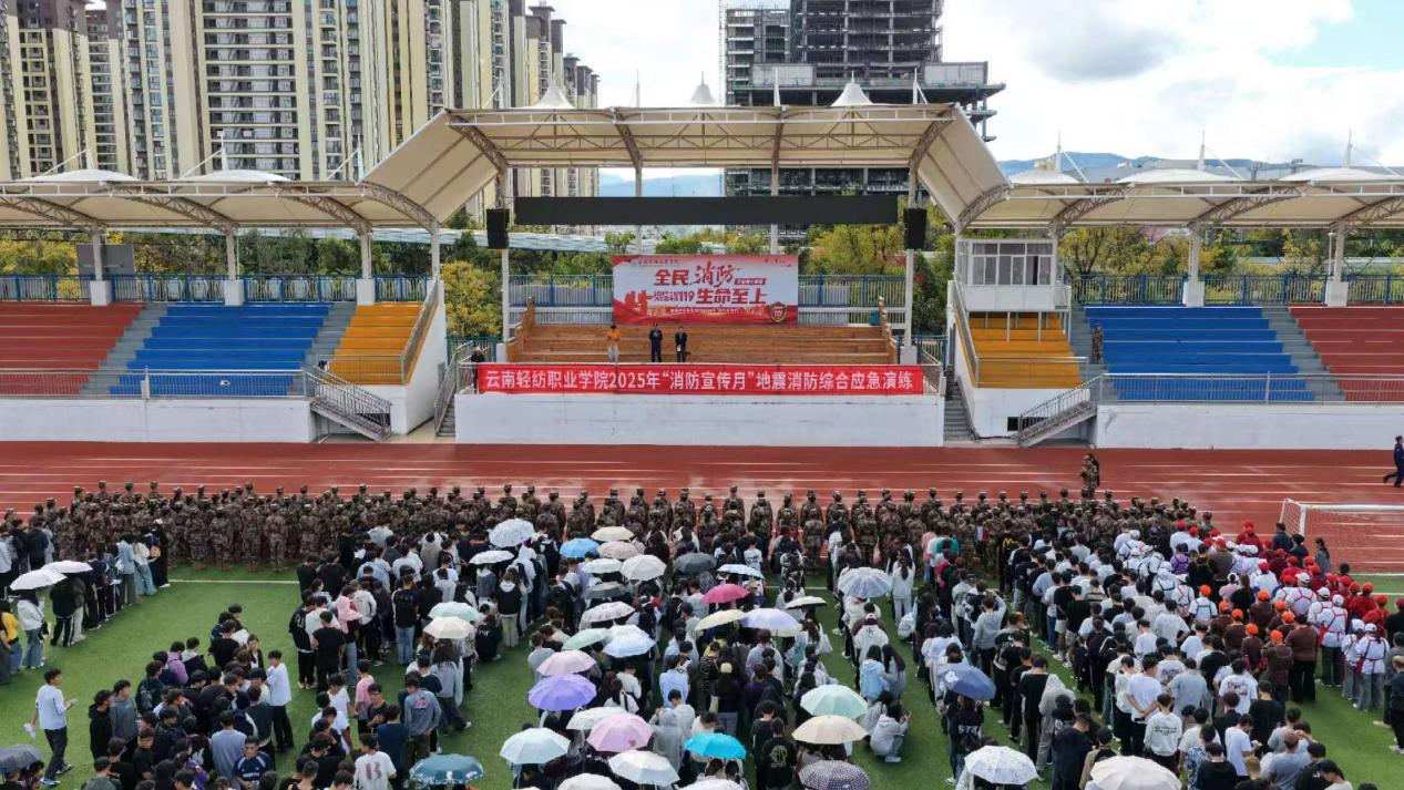 为深入贯彻落实《云南省教育厅关于做好2025年消防宣传月活动的通知》要求,切实提升师生消防安全意识和应急避险能力。2025年11月10日,云南轻纺职业学院紧密围绕“全民消防,生命至上——安全用火用电”主题,成功组织开展了地震消防综合应急演练及系列宣传教育活动。