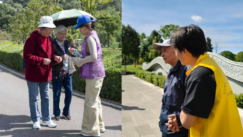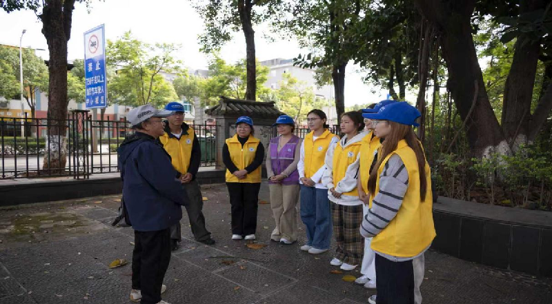 随后,学员们陪同离退休老教师前往两湖瀑布景区,同步开展敬老志愿服务。行进途中,学员主动搀扶行动不便的老教师,细致提醒脚下路况;抵达休憩点位后,及时为老教师递上饮用水,以贴心举动传递关怀,为老教师营造安全舒适的游览氛围,让志愿服务兼具人文温度与实践力度。