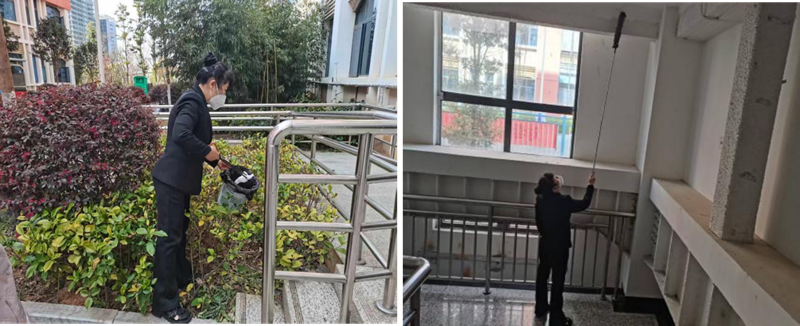 为保障学生饮水安全和居住环境卫生,工作人员对每一栋学生公寓的直饮水机进行了全面的清洗消毒和滤芯更换,确保水质安全;同时,严格按照卫生标准,对公寓公共区域进行全方位预防性消杀,并同步开展公寓周边病媒生物防制工作,从源头阻断病媒传播,为同学们筑牢健康“防护墙”。