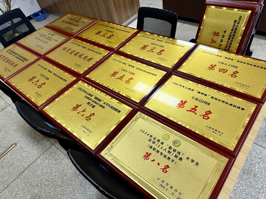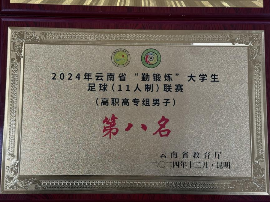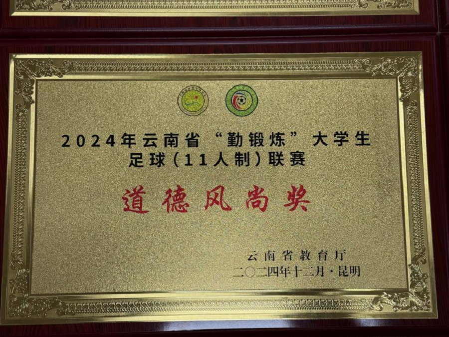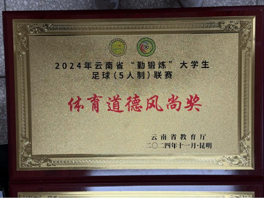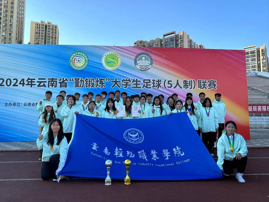由毛一波书记领队的2024年云南省“勤锻炼”大学生足球联赛高职高专女子组,荣获高职高专女子组(5人制)第一名和(11人制)第一名;由钟南老师领队的高职高专男子组分别荣获(5人制)第二名和(11人制)第八名的好成绩。其中,李雪莲、杨培垚、扎史七林、杨帮国、杨琳姿五位同学荣获2024年云南省“勤锻炼”大学生足球联赛“优秀运动员”称号。