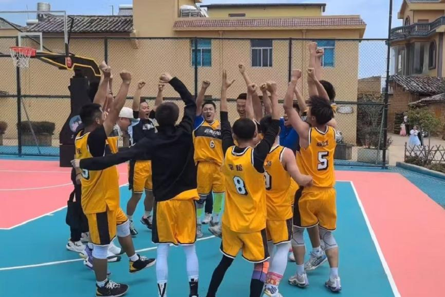 ▲教工篮球队村BA夺冠庆祝