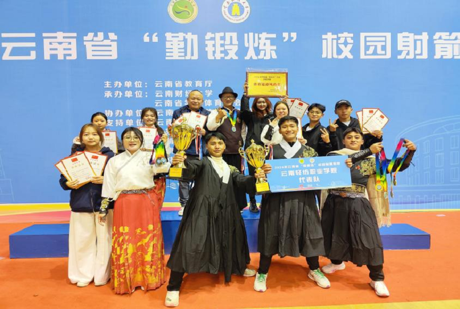 ▲云南轻纺职业学院在云南省“勤锻炼”校园射箭联赛中荣获佳绩