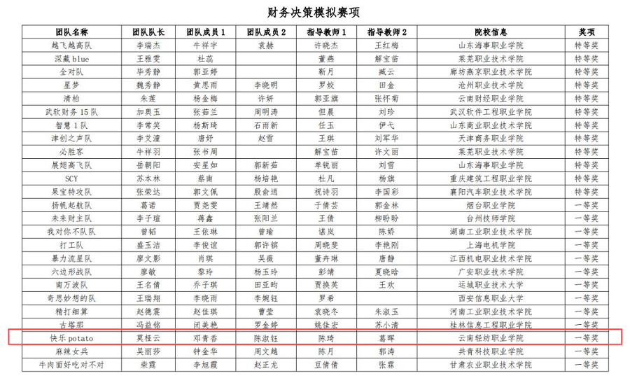 当比赛的号角吹响,由云南轻纺职业学院经济贸易学院莫桠云、陈淑钰、邓青香组成的“快乐potato”队伍,在指导教师陈琦、葛晖指导下,以扎实的财务专业知识和敏锐的市场洞察力,在第十一届“学创杯”全国大学生创业综合模拟演训活动(财务决策模拟赛项)中脱颖而出斩获一等奖。