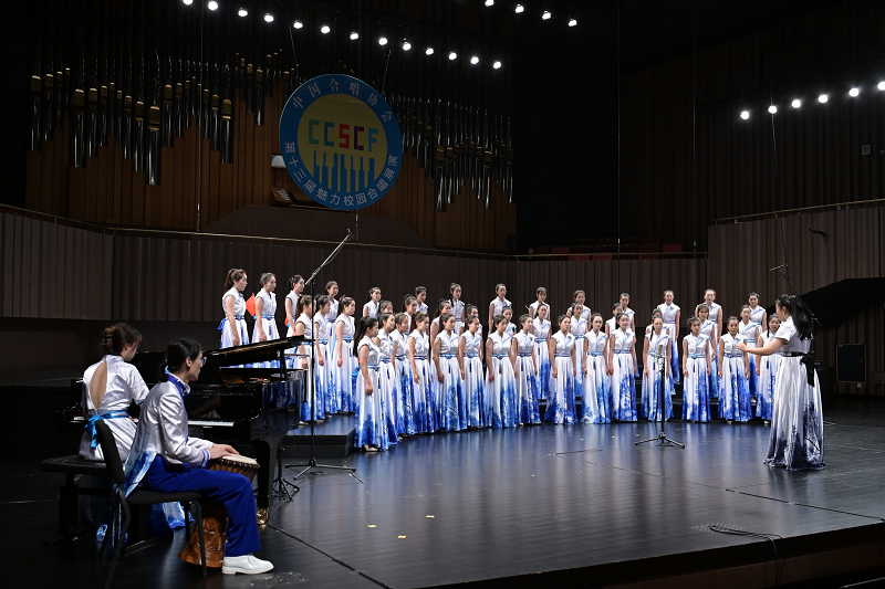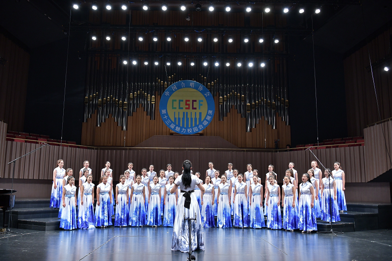 7月22日晚19:30分,比赛正式开始。当灯光聚焦于舞台,我校“婆娑”女子合唱团宛如梦幻之境中的仙子,开启了一场震撼心灵的音乐之旅。第一首作品是甘霖教授专程为比赛而创作的新作品《武夷放歌》,我校合唱团有幸成为作品的首唱者。同学们倾情演绎,歌声似潺潺溪流,婉转悠扬,又似崇山峻岭,豪迈壮阔,将武夷山的灵秀与壮美展现得淋漓尽致。而在第二首高难度参赛作品《We Are the Voices》的演唱中,她们的歌声仿佛化作了璀璨星辰,闪耀着希望与力量的光芒,直抵听众内心深处。