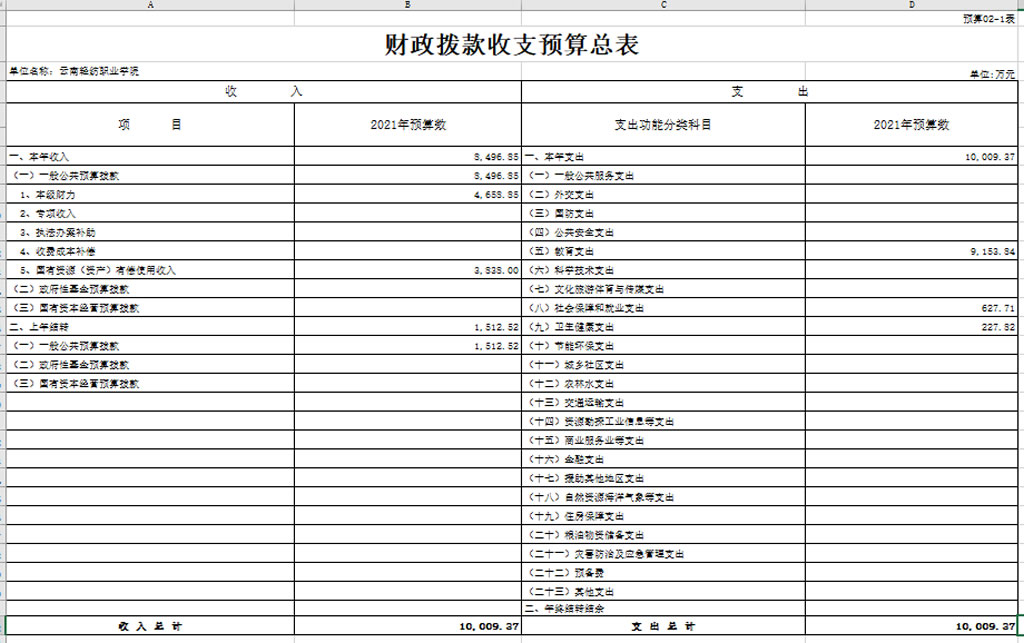 第一部分 云南轻纺职业学院2021年部门预算编制说明