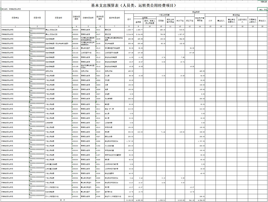 七、基本支出预算表(人员类、运转类公用经费项目)