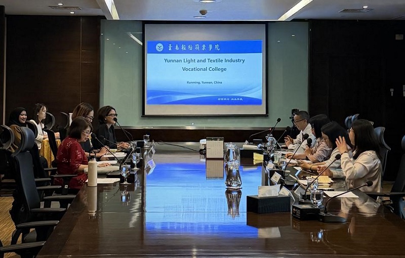 在历史悠久的印尼建国大学,两校就开展中外合作办学项目、留学合作等方面进行洽谈,深入探讨建立教师互访机制、共同开设线上课程的可能性,为未来签署校级合作谅解备忘录(MOU)奠定了坚实基础。随后,代表团在万隆纺织技术理工学院聚焦纺织材料、染织技术和时尚设计领域,深入交流了各自的研究前沿与教学体系,重点探讨了短期学生交流培养事宜,重点推进在轻工业纺织智能制造、艺术设计等领域的交流合作。