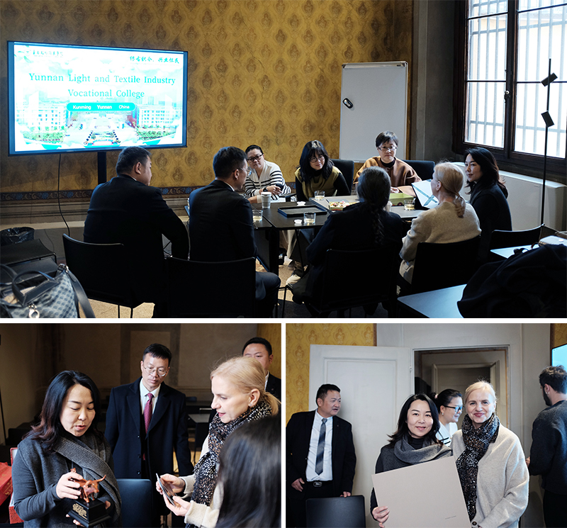 在访问佛罗伦萨自由美术学院期间,代表团向该校时尚设计教授详细介绍并展示了我校的办学特色与成果。双方重点围绕时尚设计人才的培养模式展开了深入讨论,为两校在时尚设计这一具体专业方向上挖掘了合作潜力,拓宽了对话空间。