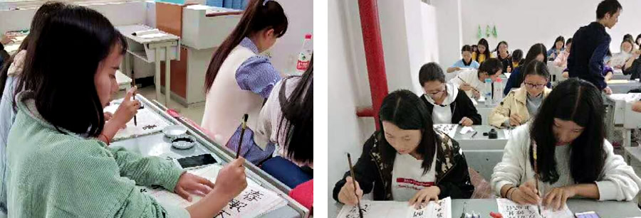 为推进我校德育、美育工作的深入开展,弘扬传承中华传统文化,营造良好的校园文化氛围,提高学生汉字书写能力和书法艺术水平,陶冶学生的情操,云南轻纺职业学院在2018年首届新生药品1801班中设了书法特色课,邀请书法大师杨时老师进行授课,营造了校园浓浓的书香墨韵氛围。