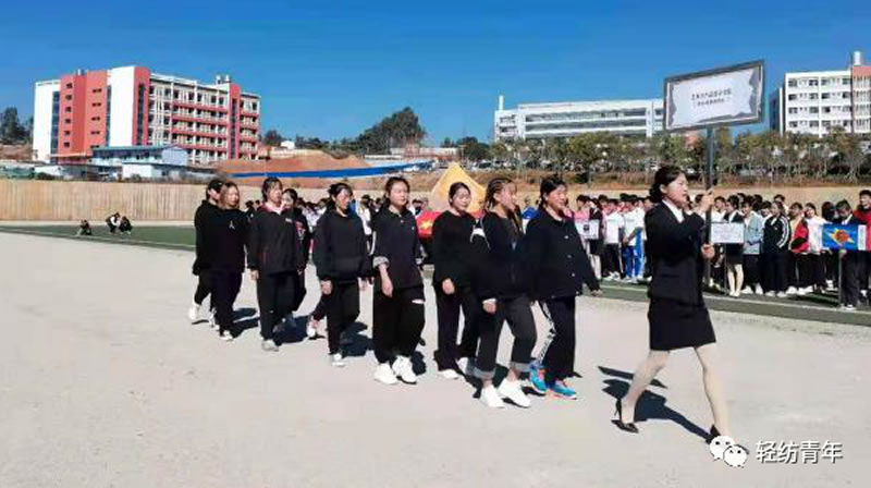 他们以饱满的热情步入运动场,展示了云南轻纺职业技术学院莘莘学子特有的朝气;喊着响亮的囗号,口号响彻云霄。表达他们“永不言败,永不言退”的决心和信心。他们英姿飒爽,他们意气风发,他们斗志昂扬,他们代表了轻纺学子对此次运动会的关注和热情。
