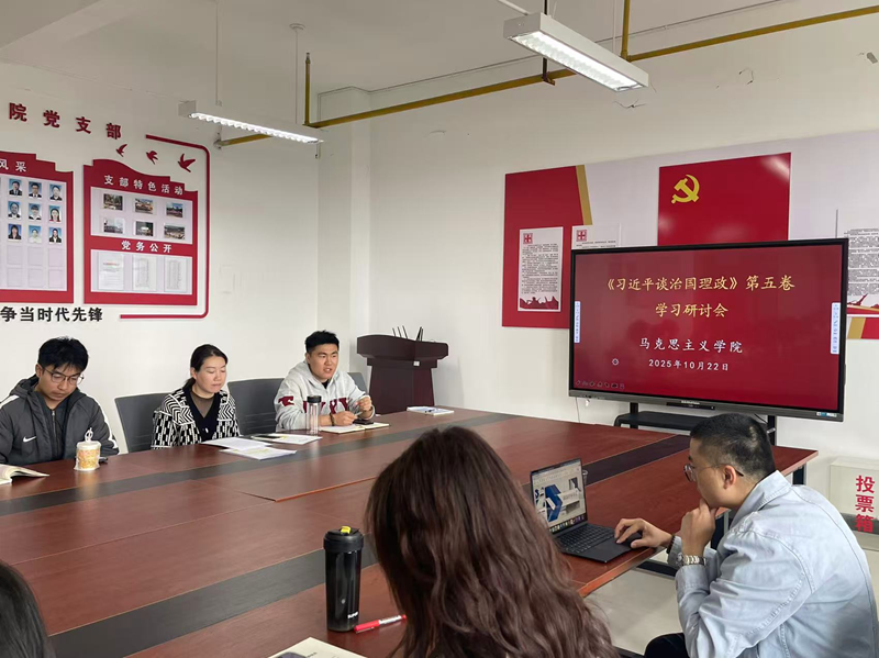 会议指出,《习近平谈治国理政》第五卷生动记录了以习近平同志为核心的党中央统揽“四个伟大”,带领中国人民奋力推进中华民族伟大复兴的历史进程,深刻阐释了中国式现代化的发展路径和实践经验,集中展示了中国共产党坚持“两个结合”、持续推动马克思主义中国化时代化的最新成果,充分彰显了我们党推动创造人类文明新形态、建设人类命运共同体的责任担当,是系统反映习近平新时代中国特色社会主义思想最新成果的权威著作。马克思主义学院要始终坚持“马院姓马,在马言马”的办学原则,以科学批判的精神读原著、学原文、悟原理、知原义,努力解决好“怎样培养人”的问题,落实好“立德树人”的根本任务,充分发挥好马克思主义学院在党的理论学习教育、研究宣传上的主阵地作用。
