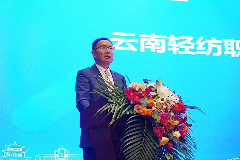 云南轻纺职业学院党委副书记、校长刘永宽致辞。他代表云南轻纺职业学院向参赛选手们的精彩表现和取得的优异成绩表示热烈祝贺,向潜心执教、精心指导的教师和严格评判、公平公正的裁判员,以及辛勤工作、细致周到的工作人员表示亲切慰问,向所有关心支持本次大赛的各界人士表示衷心的感谢。他表示,本次全国职业院校技能大赛高职组“视觉艺术设计”赛项在云南省举办,促进了全国职业院校同我省各职业院校间的学习交流。大赛充分展示了职业院校广大师生积极向上的精神面貌,各参赛队的专业技能水平,为视觉艺术设计学生技术技能培养和交流搭建了高层次平台,将有效促进全国高职视觉艺术设计专业建设,大力推进视觉艺术设计高技能人才培养,为增强视觉艺术设计专业影响力、服务行业高质量发展发挥积极作用。希望各参赛队伍今后能够继续加强交流沟通,相互借鉴,共同促进职业教育再上台阶。