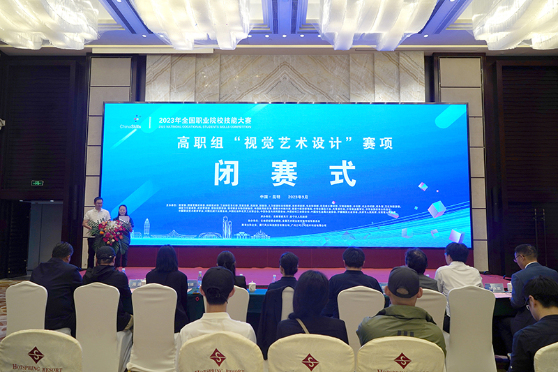 9月28日,2023年全国职业院校技能大赛组高职组“视觉艺术设计”赛项圆满落下帷幕。闭赛式在安宁广晟酒店昆明厅举行。大赛组委会、执委会、专家组、监督仲裁组、裁判组和工作人员,来自全国31个省、自治区、直辖市的71个代表队领队、指导老师、选手参加闭赛式。