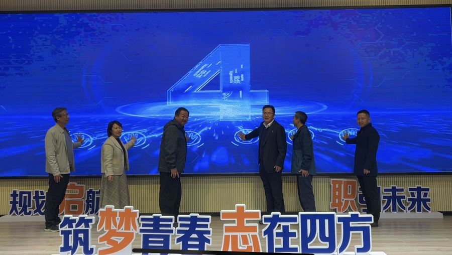 在启动仪式上,各位领导共同按下启动按钮,标志着第二届“轻纺杯”大学生职业规划大赛正式拉开帷幕。