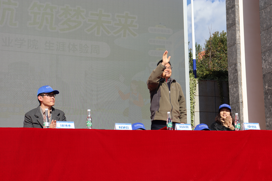 刘永宽致辞并宣布云南轻纺职业学院2024年大学生生涯体验周活动启动。致辞中,他强调生涯体验周活动是当代新兴的一种大型体验式生涯教育活动,是大学生职业生涯规划课程的实践教学环节。为帮助同学们更好地了解自己所学专业和未来发展方向,学校举办主题为“规划启航 筑梦未来”生涯体验周活动,旨在通过实践、互动、交流等方式,帮助大家探索、发掘职业兴趣、职业认知、职业倾向,提高自我职业规划能力,实现个人成长,达成职业发展,为未来的职业生涯做好充分准备。