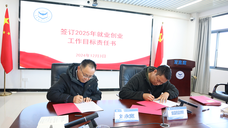 最后,刘永宽代表学校分别与纺织服装学院、食品药品学院、机电工程学院、艺术设计学院、人工智能学院、经济贸易学院、教育体育学院七个学院签订了就业工作目标责任书,进一步夯实了责任,开启2025届毕业生就业创业工作新征程。