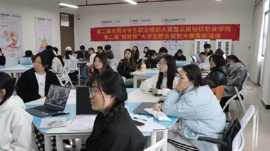 为切实营造校园良好的就业创业氛围,提升学校学生职业规划能力,进一步强化参赛学生能力。云南轻纺职业学院于2024年12月21日成功开展第二届“轻纺杯”大学生职业规划大赛集训活动,共计40名学生参加,国家二级人力资源管理师邓姗、国家生涯规划师杨竟时为培训讲师。