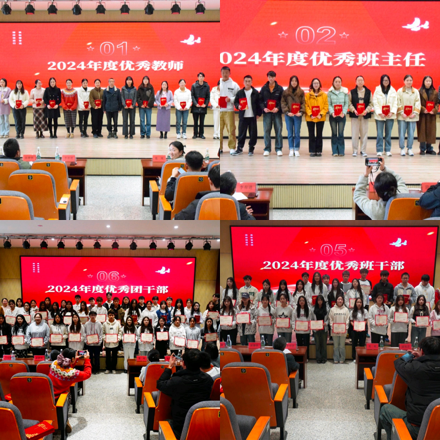 本次表彰大会对经济贸易学院的优秀教师、优秀班主任、优秀班级、文明宿舍、优秀班干部、优秀团干部、优秀宿舍长、优秀志愿者等在2024年有突出表现、具有模范带头作用的集体和个人进行了表彰。