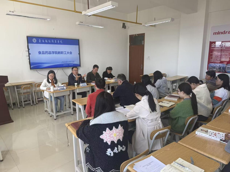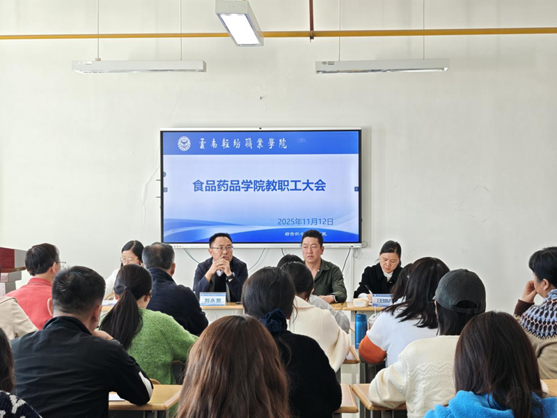 2025年11月12日,刘永宽校长赴食品药品学院开展交流指导,为学院发展把脉定向。学院全体教职工参会。会议严格落实“第一议题”制度,邵贵生书记带领全体教职工认真学习了党的二十届四中全会精神,强化思想引领,筑牢政治根基。