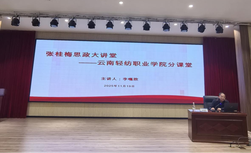 11月19日下午,“张桂梅思政大讲堂—云南轻纺职业学院分课堂”在学校开讲。此次分课堂主讲人为云南省工青妇干部学校工会培训部原主任、副教授李嘎欧。学校部分教师、学生代表共计260余人参加了学习。