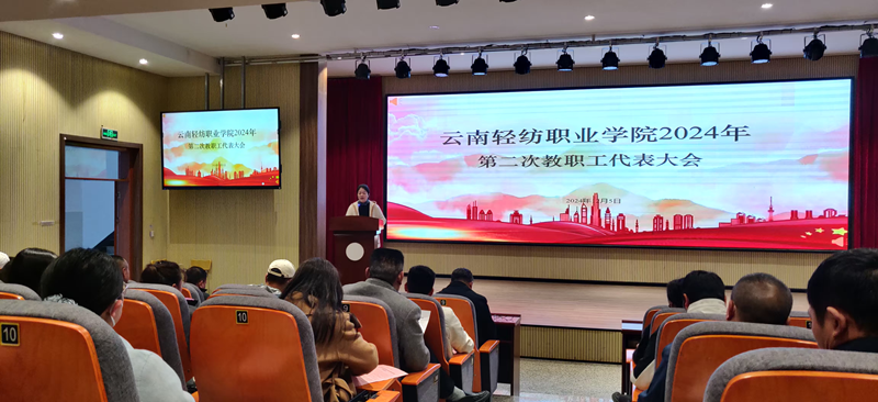 2024年12月5日,云南轻纺职业学院2024年度教职工代表大会第二次会议在学校苏芳厅召开,党委书记毛一波、党委副书记李伦琼出席会议,28名教职工代表以及列席代表参加。大会由党委副书记李伦琼主持。