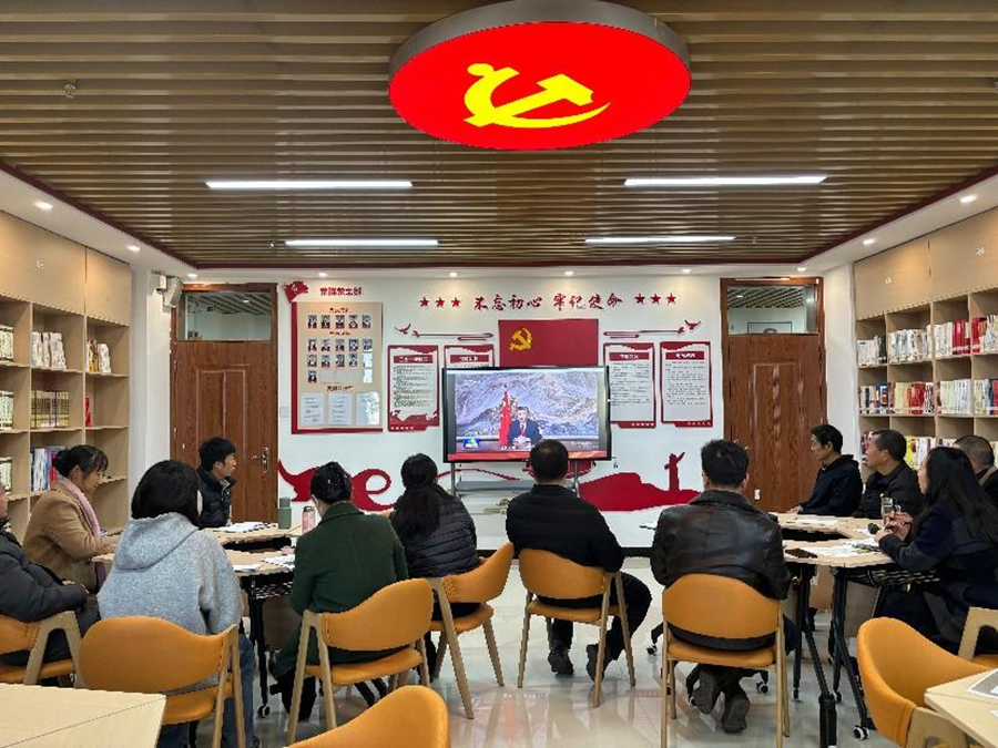 党群党支部全体党员首先以习近平主席2025新年贺词为第一主题进行了视频学习。“梦虽遥,追则可达;愿虽艰,持则可圆”习近平主席铿锵的话语、殷切的期盼、美好的祝福激起了党员同志强烈共鸣、引发热烈反响。