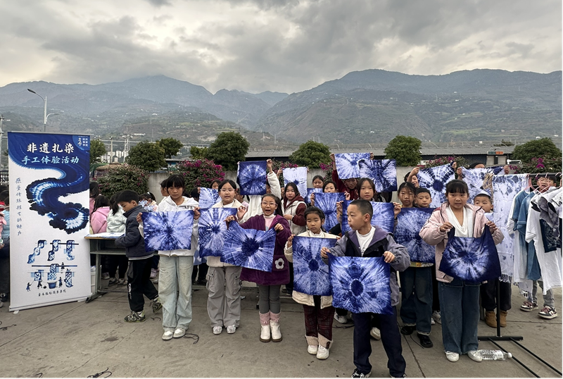 在成果展演系列活动中,既有支教学生指导巧家县中小学生创作的手工、美术类优秀作品,又有趣味生动的体育互动及非遗蜡扎染传统技艺体验项目,还有一台融合舞蹈、合唱、朗诵、情景剧等形式的综合性文艺展演。来自各年级的小学生和支教师生团队共同呈现了包括《哈尼宝贝》《强国少年》《大中国》等在内的十余个精彩节目,现场气氛热烈,充分体现了“以美育人、以美化人”的浸润成果。