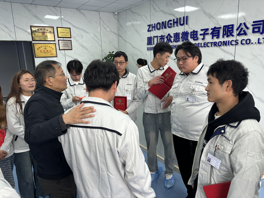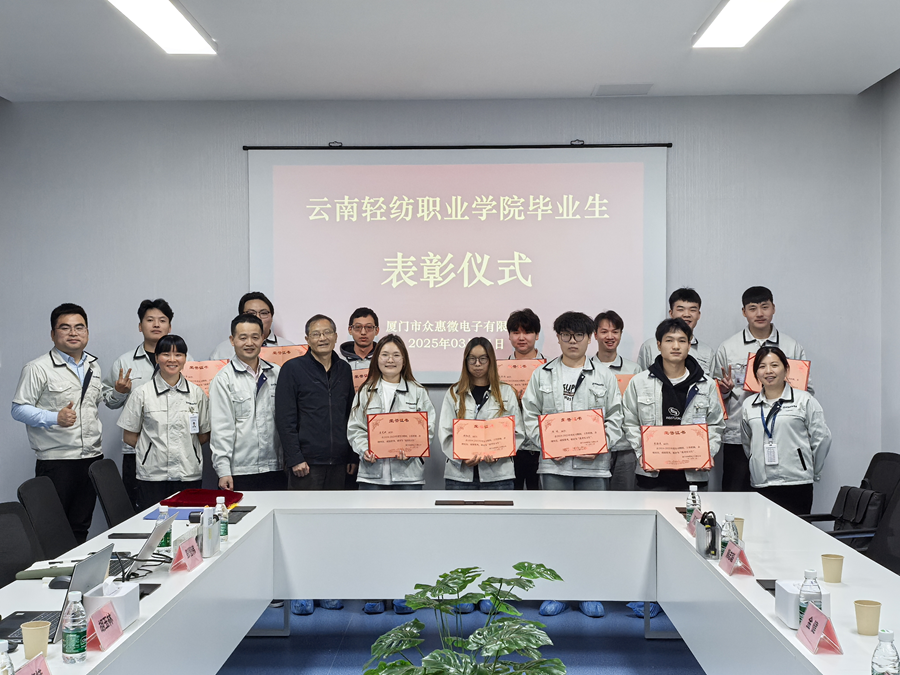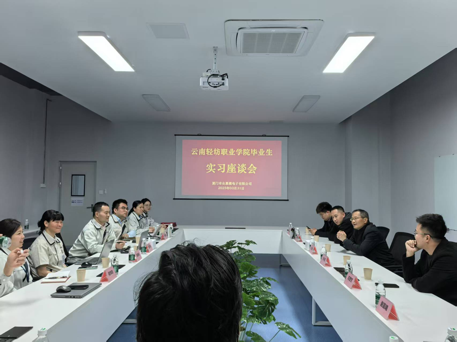 为深入了解实习学生的工作与生活情况,加强学校与实习单位的沟通交流,2025年3月31日,云南轻纺职业学院党委委员、机电工程学院院长金健,机电工程学院实习就业干事熊志毅,前往厦门众惠威电子有限公司看望在当地实习就业学生,并与实习单位开展交流活动。