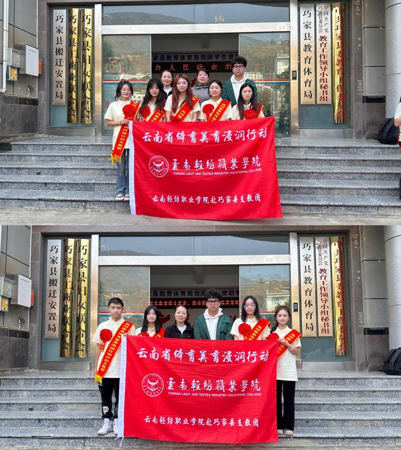 本次行动,是纺织服装学院积极响应云南省教育厅“体育美育浸润行动计划”和学校美育工作开展的重要举措。第一批支教团队由纺织服装学院骨干教师王顺富带队,遴选了来自服装设计与工艺、服装与服饰设计、人物形象设计专业的9名学生组成,支教期为4个月,帮扶校为巧家县第七中学和巧家县高级职业中学。此次支教以“精准对接、长效赋能”为原则,重点围绕职业教育提质、校园文化赋能、美育课程创新三大维度,系统推进五大核心任务,为两校体育美育教育事业注入教育活力。
