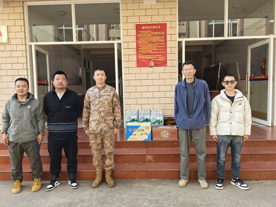 为全面了解学校准备参军入伍学生在役前训练期间的思想、训练和生活情况,帮助他们顺利度过参军入伍适应期,进一步做好跟进服务工作。2025年3月10日早上,学校学生处(武装部)部长陈静林、副处长王元卿、专职武装干事明鸿旭、丁习林赴新兵役前集训基地,看望参加2025年役前训练的同学。