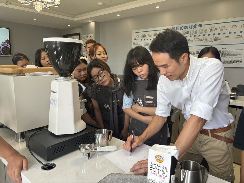 李涛大师拥有17年行业经验,曾任职于国内知名精品咖啡连锁品牌,负责产品研发、品控与培训工作,持有Q-grader国际咖啡品质鉴定师、SCAE高级咖啡师等多项专业认证,屡次获得国内外咖啡赛事奖项,并多次担任咖啡拉花大赛评委。他表示,接下来将依托“教学-培训-研发”三位一体的模式,协助学院工作室开发具有云南特色的咖啡产品,系统性培养学员从豆种甄别、冲煮到拉花的全链条技能。
