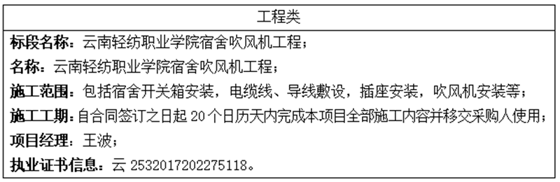 YNGH[2025]-646云南轻纺职业学院宿舍吹风机工程成交结果公告