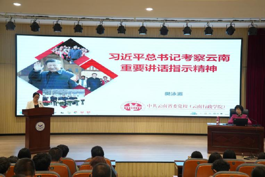 本次报告会特邀中共云南省委党校(云南行政学院)民族和文化教研部原主任、二级教授樊泳湄作为主讲嘉宾。樊泳湄教授的报告从重大意义、丰富内涵、基本要求三个方面对习近平总书记考察云南重要讲话指示精神进行了全面、深入的解读,内容详实、逻辑严谨,为我们准确把握精神实质提供了专业指导。习近平总书记考察云南重要讲话,高瞻远瞩、思想深邃、内涵丰富、催人奋进,深刻阐述了新时代新征程上云南发展的根本性、战略性、全局性问题,为云南现代化建设指明了前进方向、赋予了重大使命、明确了实践路径、教授了思想方法,是指导各项工作的核心指引。